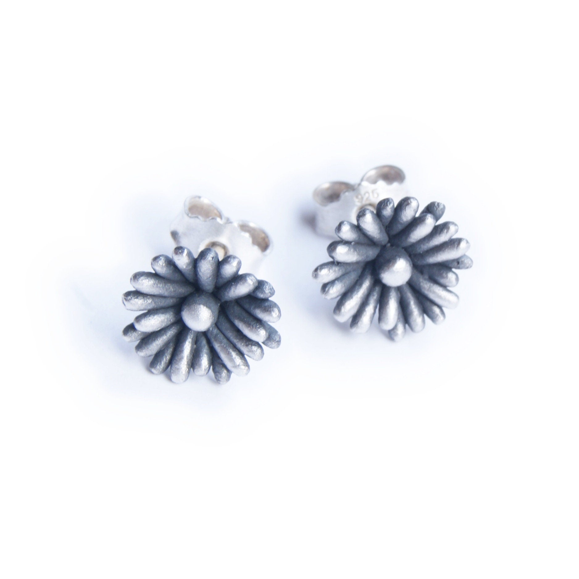 Recycled Silver Flower Stud Earrings: Patinated, Blackened, Whitened